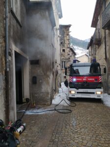 Il primo incendio è divampato a Preturo, popolosa periferia di L’Aquila, dove nel piano seminterrato di un edificio residenziale, abitato da una coppia di anziani, il rogo è stato probabilmente causato da una stufa a legna. Le fiamme hanno rapidamente coinvolto la grande quantità di materiale combustibile, presente nell’ambiente, generando molto fumo che ha invaso l’intero edificio. I Vigili del fuoco hanno messo in salvo i due anziani e fatto evacuare il resto dell’immobile.