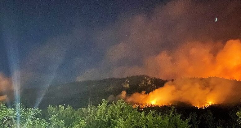 Alle ore 15:30 circa, richiesti dal DOS, giungono sull’incendio ben cinque Canadair, velivoli della