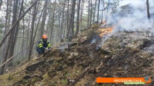 In mattinata una nota della Regione informava che erano “cominciate molto presto nella giornata di oggi le operazioni di spegnimento degli incendi che in questi giorni hanno interessato i boschi di monte Omo e monte Pettino. La pioggia di ieri sera ha dato un enorme contributo, questa mattina, per spegnere gli ultimi bracieri, sono stati impiegati 1 Canadair, 1 Erickson e l’elicottero della protezione civile regionale. 100 vigili del fuoco, 49 uomini del 9°Reggimento Alpini e 58 volontari della protezione civile sono impegnati nelle attività di bonifica. La statale 80 risulta ancora chiusa al traffico. Per questioni di sicurezza”.