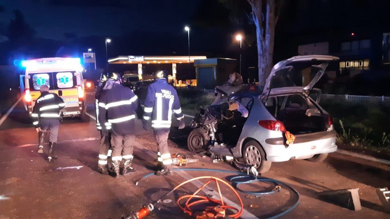 A causa della violenza dell’impatto le lamiere dell’auto si sono contorte e le gambe della donna sono rimaste incastrate al punto che i vigili del fuoco hanno dovuto lavorare per oltre mezz’ora per riuscire a liberarla, utilizzando cesoia, divaricatore e pistone idraulici. Poi hanno effettuato tutte le manovre necessarie a mettere in sicurezza il mezzo incidentato, che è stato successivamente recuperato da un carro attrezzi del soccorso stradale.