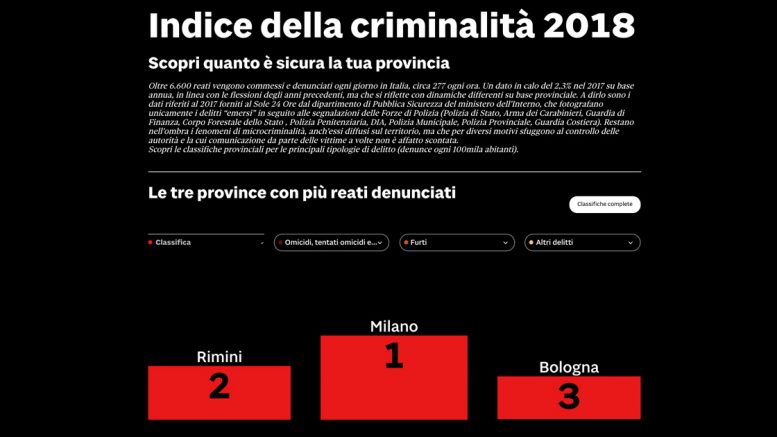 Da uno studio pubblicato su “Il Sole 24 Ore” l’indice della criminalità registrato nel 2018 provincia per provincia. In Abruzzo Pescara al 23° posto con 13.469 reati.