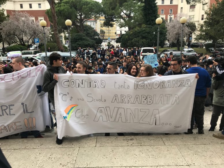 In sottofondo le note della canzone vincitrice del festival di Sanremo “Soldi” di Mahmood, quei soldi che sarebbero già stati stanziati, circa 2 milioni e 300 mila euro, ma che dalla Provincia ancora vengono messi a disposizione per far partire i lavori di ristrutturazione nella sede dell’Ipsaar “De Cecco” di Via Italica. In quei locali sono molti i danni causati dalle grandi piogge di autunno, tanto che dal 30 ottobre, per ragioni di sicurezza, l’Istituto è stato chiuso con gli inevitabili disagi per gli studenti e per il corpo docente, costretti a migrare per le varie succursali della città.