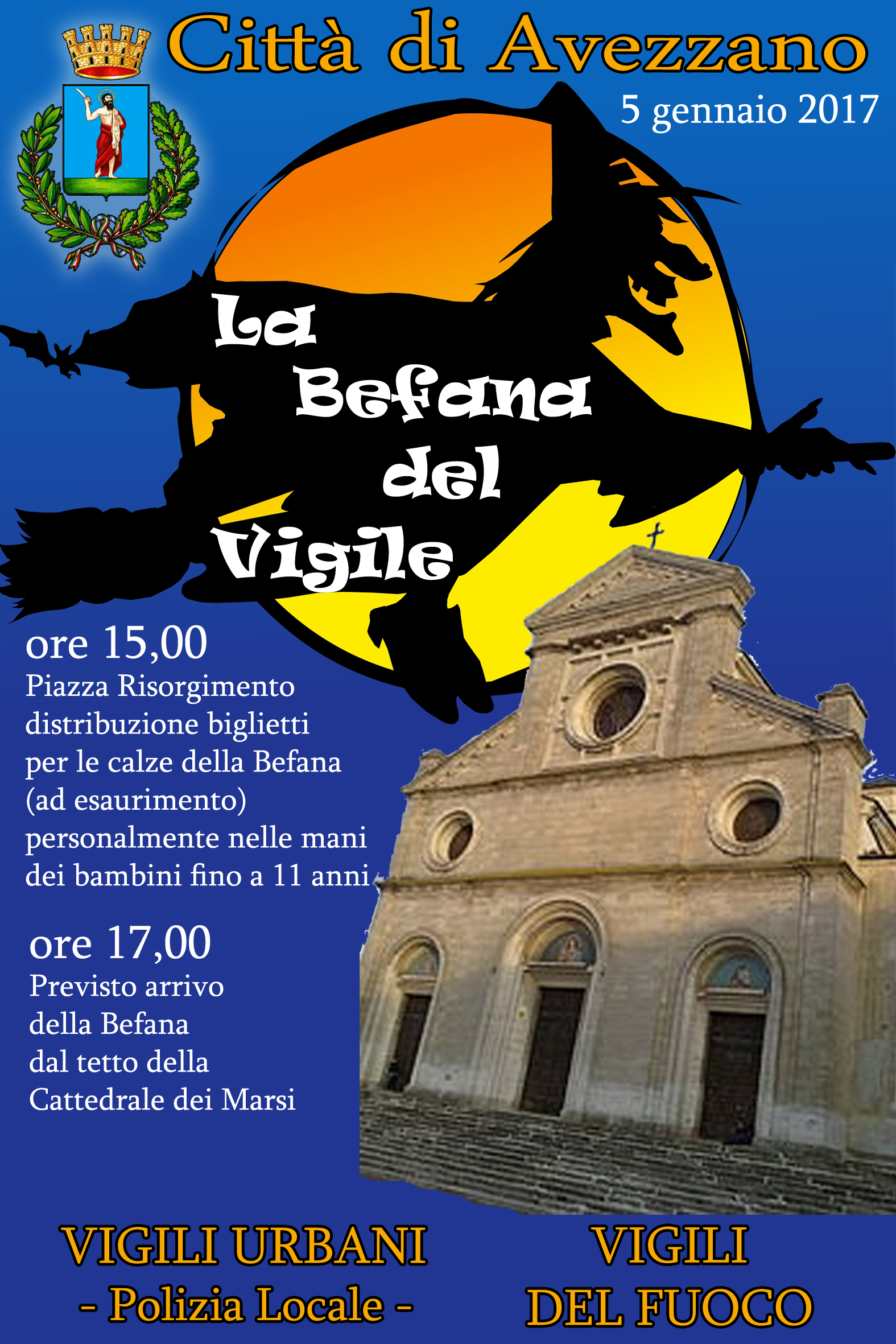 Torna il tradizionale appuntamento con “La Befana del Vigile” che si tiene ad Avezzano da oltre dieci anni. La manifestazione, organizzata dalla Polizia municipale insieme ai Vigili del Fuoco, si svolgerà in piazza Risorgimento dalle ore 15 alle 17 di giovedì 5 gennaio. I vigili distribuiranno ai bambini i biglietti per le calze della Befana e la vecchina scenderà dal tetto della Cattedrale dei Marsi. Sarà presente anche un gazebo degli Alpini che offrirà ai più grandi il vin brulé. Il 6 gennaio, Polizia Locale e Vigili del Fuoco, faranno visita alle due “case famiglia” di Avezzano e doneranno ai ragazzi le calze e altri regali.