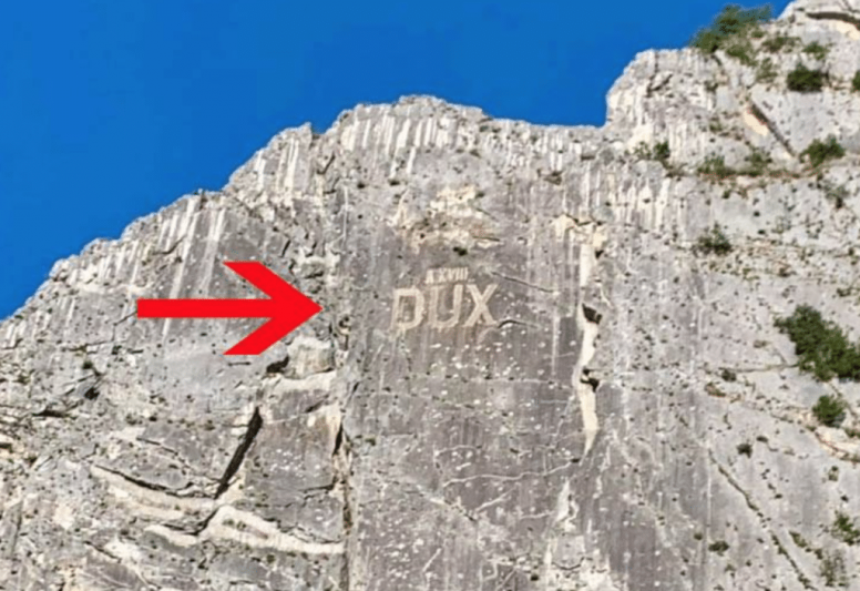 Nel comune di Villa Santa Maria nella provincia di Chieti è riapparsa una scritta impressa nella roccia durante il ventennio fascista inneggiante al Duce.