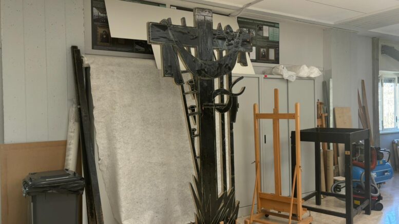 La grande Croce è la prima opera sottoposta a restauro. L’intervento è oggetto di tesi di uno studente Daniele Muggia seguito dalla restauratrice, la professoressa Grazia De Cesare.
