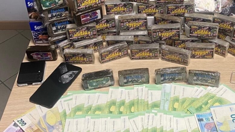 Nell’ambito di mirati servizi diretti alla repressione del traffico di sostanze stupefacenti, personale della Sezione Antidroga della locale Squadra Mobile, nella giornata di sabato scorso, grazie all’attività info-investigativa, rinveniva occultato, sotto al giubbotto indossato dall’uomo, controllato a bordo dell’autovettura a lui in uso, 1 kg di sostanza stupefacente del tipo hashish suddivisa in 10 panetti mentre, all’interno di una borsa poggiata sul sedile dell’auto, venivano rinvenuti 3 grossi involucri contenenti ciascuno 10 panetti della stessa sostanza stupefacente per un peso complessivo di 3,1 kg.