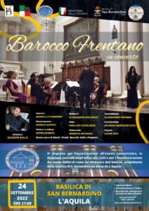 Si terrà domani sabato 24 settembre, all’interno della basilica di San Bernardino a L’Aquila, il concerto dell’Ensemble “Barocco Frentano” diretto da Giuseppe Rullo