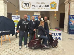 Alla giornata hanno partecipato anche il sottosegretario alle imprese e al Made in italy Fausta Bergamotto, il sindaco Pierluigi Biondi, con il presidente del Vespa club dell’Aquila e quello nazionale. Grande impegno del consigliere comunale Livio Vittorini che ha fortemente voluto che si aprissero le porte di Palazzo Margherita.