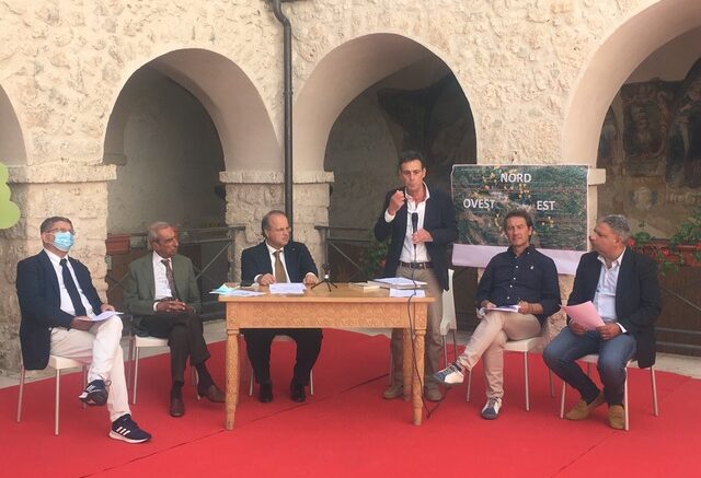 E’stato presentato oggi presso la sede del Parco Nazionale Gran Sasso Monti della Laga il progetto “Nexum Equum”. L’iniziativa nasce da un’idea del centro di ricerca e sviluppo Demiogene in collaborazione con l’Ente Parco, con il FAI (Fondo Ambiente Italiano), con la FISE (Federazione italiana sport equestri) e con la FITE TREC ANTE, (Federazione italiana turismo equestre) e ha l’obiettivo principale di generare un sistema integrato di accoglienza idoneo ad assicurare elevate marginalità economiche, sociali a zero impatto ambientale. Coinvolgerà 29 comuni tra le province di Teramo, L’Aquila e Pescara intese come amministrazioni locali competenti delle 59 località interessate dal percorso. All’incontro erano presenti Tommaso Navarra Presidente Parco Gran Sasso Monti della Laga, Giovanbattista Galeota Responsabile centro di ricerca Demiogene, Nicola Zarlenga presidente FITE TREC ANTE Abruzzo, Massimo Lucà Dazio presidente FAI Abruzzo e Molise e Rocco De Nicola Presidente FISE Abruzzo.