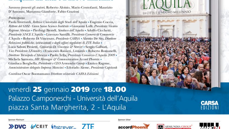 Oggi alle 18 presso Palazzo Camponeschi verrà presentato il libro “L’Aquila. La città e il nuovo millennio”. La presentazione sarà lo spunto per parlare del ruolo della grande impresa nella ripresa economica e sociale della città. Moderato dal direttore editoriale di Carsa, Oscar Buonamano, si discuterà, partendo dai temi proposti dal libro, del futuro dell’Aquila con alcuni autori Roberto Aloisio, Mario Centofanti, Maurizio DAntonio, Marianna Gianforte, Fabio Graziosi parteciperanno al dibattito Paola Inverardi (Rettrice Università degli Studi dell’Aquila), Eugenio Coccia (Rettore del GSSI – Gran Sasso Science Institute), Giovanni Lolli (Presidente Vicario Regione Abruzzo), Pierluigi Biondi (Sindaco dell’Aquila), Lorenzo Santilli (Presidente Camera di Commercio L’Aquila), Alessio De Sio (Direttore Relazioni pubbliche, istituzionali e degli affari regolatori di ZTE Italia), Luca Salvati Proietti (Consorzio Di Vincenzo & Strever), Sergio Galbiati (Vice Presidente LFoundry), Francesco Ranieri (Direttore Leonardo L’Aquila), Roberto Romanelli (Direttore Tecnopolo d’Abruzzo), Paolo Tella (Presidente Consorzio L’Aquila 2009), Michela Santoro (HR Manager & Communication Accord Phoenix), Gianluca Berghella, (Presidente e CEO Armundia Group), Enrico Ragone, (Amministratore delegato Impresa Mancini), Edoardo Alesse (Presidente Capitank). Il volume, con testi in italiano e inglese, racconta di come la comunità si è stretta attorno a valori comuni e grazie al saper fare di gran parte della sua classe dirigente ha imboccato una strada che l’ha portata ad essere, oggi, più bella e sicura di prima. Il merito di questo processo virtuoso lungo e non ancora terminato va ripartito tra tante persone e istituzioni che, seppur nella parzialità che ogni opera d’ingegno porta con se, abbiamo provato a raccontare in questo volume. La prefazione al libro è di una firma autorevole del giornalismo italiano, Sergio Rizzo.