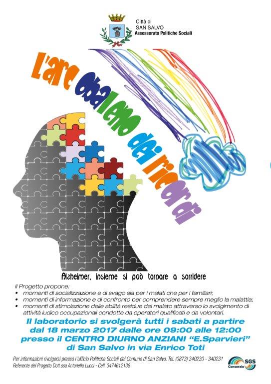 L’assessore comunale alle Politiche sociali Maria Travaglini afferma che “Vuole essere un punto di accoglienza sia per le persone affette dalla malattia che per i familiari, troppo spesso fravati dal peso delle cure e delle responsabilità nella gestione quotidiana dei propri cari.Personale qualificato come psicologi, educatori e volontari, faranno compagnia agli anziani proponendo diverse attività ricreative e manuali, adatte a stimolare le residue capacità e a ristabilire un rapporto con gli altri.Per informazioni e iscrizioni telefonare agli uffici delle Politiche sociali del Comune di San Salvo 0873.340230/340231 oppure contattare la dott.ssa Antonella Lucci (tel. 347.4612138) referente del progetto “.
