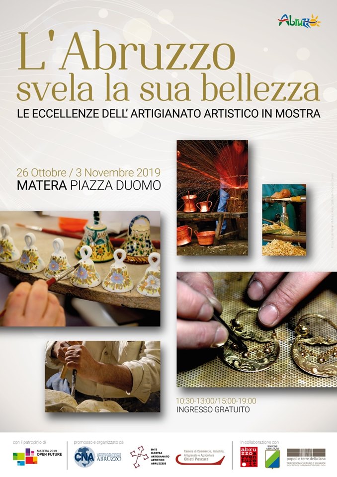 L’artigianato artistico abruzzese, dal 26 ottobre al 3 novembre prossimi, sarà in mostra a Matera, la Capitale Europea della Cultura.