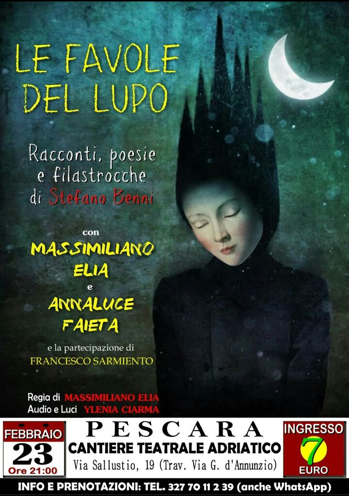 Un omaggio a Stefano Benni quello che andrà in scena domani sera al Cantiere Teatrale di Via Sallustio a Pescara con lo spettacolo “Le Favole del Lupo”.