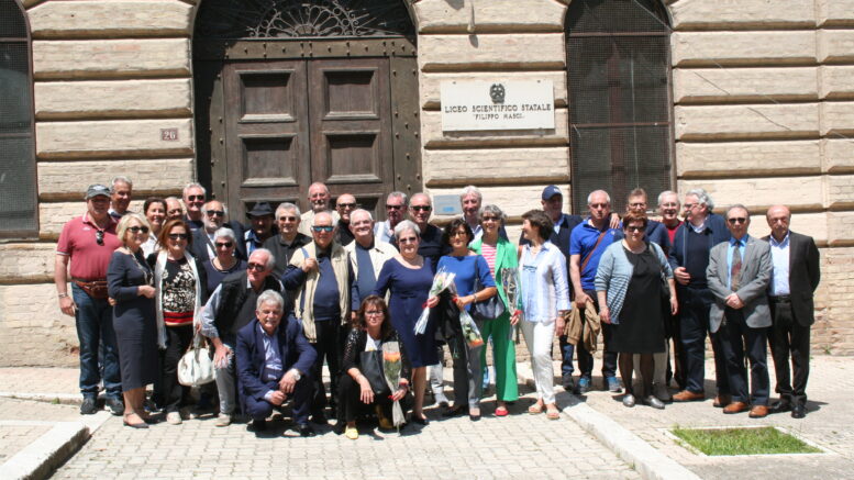Si sono dati appuntamento davanti alla scuola dove nel 1973 conseguirono il diploma di Maturità per la classica foto di gruppo prima di pranzare in un locale del centro. Un’occasione per stare insieme e rievocare in allegria gli anni passati insieme e fare un bilancio della vita professionale e non, ma con lo spirito di diciottenni che si ritrovano dopo mezzo secolo. Alla rimpatriata hanno partecipato: Marcello Tagliamonte, Marco D’Alessandro, Erminia D’Alessandro, Mario Santarelli, Nicolino Fiocca, Anna Luberti, Naida Consorte, Giovanna Scaringella, Francesco Benzi, Fulvio Potere, Fabrizio Rossi, Claudio Cirotti, Antonio Iacovella, Fulvia Colalongo, Lucio D’Alessandro, Massimo D’Angelo, Eugenio Marchesini, Lucio Di Peppe, Raffaella Zuccarini, Franco Casagrande, Mario Gabriele, Maria Santoleri, Margherita Scutti, Paolo Castignani, Patrizia Chiacchia, Sem D’Arcangelo, Giuseppina De Stefanis, Antonino Di Carlantonio, Mario Di Muzio, Nino Ferri, Marisa Iacobucci, Anna Maria Orlandi, Camillo Sborgia, Gabriella Scaricaciottoli, Antonio Sutti oltre ai professori Luciano Primavera e Domenico Guerra.