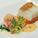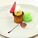 Lo chef abruzzese ricorda che “Quale occasione migliore poteva esserci per proporre e divulgare concetti e tecniche dei piatti vincitori del podio medaglia d’ oro del team abruzzo dell’ anno scorso svoltasi a Montichiari Brescia ,una competizione a squadre , presentando uno starter (baccala in olio di cottura, pane cotto, rollatina di gamberi rossi, farcita con asparago e ricotta di pecora agrumata e maionese al miele con la sua insalatina ) Un maincorse (rotolo di coniglio cacio e uovo su rosty di patate carciofo al vapore ,terrina e polpettina di coniglio su crema di zucca taccola fungo e cipolla rossa ) un dessert ( cestino croccante di pasta fillo pere e cioccolato ,bavarese al mango su pralinato di mandorle ,gelato al rosmarino cialda all alchermes e spugna alla centerba ).Presentando alcune portate spiegavo l’ importanza e la valorizzazione della materia prima attraverso tecniche e cotture appropriate ,interpretazione del tema in concorso ,norme igenico sanitarie , training ,ideazione dei piatti ,stategia ,ricette e dispense eccetera. Inoltre valorizzando la birra in cucina ,interpretando con corretti abbinamenti ( birra da mordere ,perle di gelatina,riduzioni e maionesi il tutto a base di birra tongerlo doppio malto alta fermentazione con lieviti risalenti all’epoca rinascimentale . Due giornate ricche di emozioni per il nostro abruzzo con pensieri, concetti ,ricerca e sviluppo. Sono orgoglioso di aver rappresentato la mia terra in un momento in cui il mio territorio e stato investito da svariate calamita naturali……. Forza Abruzzo! Rialziamoci più forti aiutandoci proprio con le bellezze straordinarie che ci regala la natura fra emozioni di acqua e di terra”.