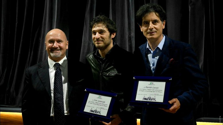 I due artisti abruzzesi hanno ricevuto una targa per l’impegno nella valorizzazione dei luoghi e dei personaggi dell’Abruzzo, testimoniato dalla messa in scena di opere di grandi personaggi abruzzesi quali Ignazio Silone, Ovidio, D’Annunzio, Ennio Flaiano, Alessandro Cicognini. Lino Guanciale attore di teatro, fiction e cinema e il maestro Davide Cavuti compositore per il cinema e per il teatro per registi quali Michele Placido, Giorgio Pasotti e per i compianti maestri Pasquale Squitieri, Giorgio Albertazzi e attivo anche come regista. Il riconoscimento è stato consegnato dall’avvocato Lucrezio Paolini , vicepresidente vicario del consiglio regionale abruzzese, prima della tappa francavillese della tournée “Itaca” che vede protagonisti Guanciale e Cavuti e che sta taccando i teatri di tutta Italia.
