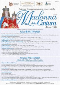 Si festeggia la Madonna della Cintura, sabato (6 settembre) e domenica (7), ad Atessa, in un’edizione investita da un significato speciale perché è quella in cui si celebrano i 3 secoli dalla fondazione della Confraternita della Cintura, che si occupa di organizzare la manifestazione. Il culto della Madonna prende questo nome perché si racconta che, al momento dell’ascensione al Cielo, Maria perse proprio la cintura.