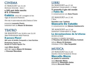 Si parte l’11 maggio nella sala 2 della multisala Smeraldo, alle ore 21 con ingresso libero, con la proiezione della copia restaurata dalla Cineteca di Torino del capolavoro del muto “Cabiria – Visione storica del terzo secolo a.C.”, pellicola del 1914 di Giovanni Pastrone su sceneggiatura di Gabriele d’Annunzio, per celebrare il 160° anniversario della nascita del Vate.