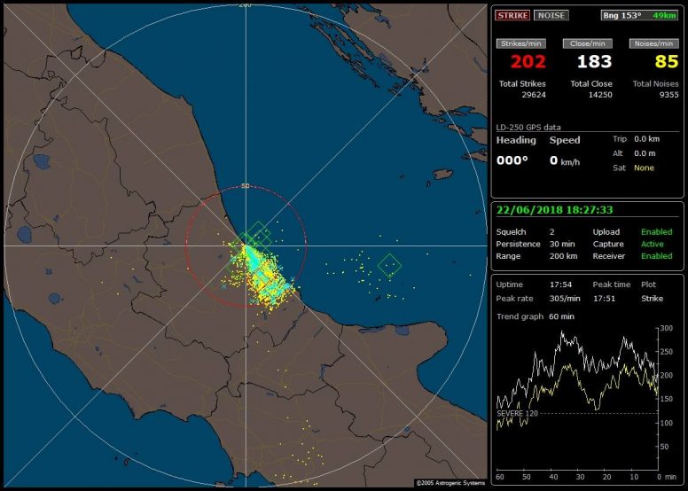 Repentino abbassamento della temperatura che in un’ora è passata da 29 a 23 gradi. Numerose le chiamate arrivate ai centralini delle forze dell’ordine. Diversi gli interventi in atto. Controllo sui sottopassi e sui corsi d’acqua. A Pescara allagate alcune strade. Piogge anche nelle zone interne. Il sito Abruzzometeo.org prevede nel corso del pomeriggio-sera rovesci e manifestazioni temporalesche anche di forte intensità, accompagnate da violente raffiche di vento e da occasionali grandinate; attesa anche una generale e sensibile diminuzione delle temperature a causa dei venti freschi in arrivo, che determineranno anche un deciso aumento del moto ondoso. Nella giornata di sabato assisteremo ad una graduale attenuazione della nuvolosità e dei fenomeni con ampie schiarite su tutto il territorio regionale. Disagi notevoli anche sulla viabilità ; traffico bloccato e coda di oltre un chilometro sull’A14 tra Città S.Angelo e Pineto anche per via di un incidente; rallentamenti anche più a sud tra Ortona e Lanciano, mentre si segnalano forti rallentamenti anche al bivio tra A14 e A25 a causa di allagamenti.
