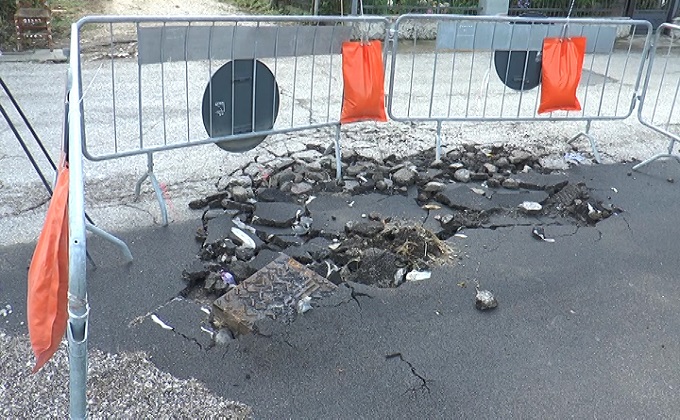 A partire dal primo pomeriggio di ieri tutti i vigili del fuoco in servizio nelle sedi di Teramo, Nereto e Roseto degli Abruzzi sono stati impegnati in interventi di soccorso. Sono stati infatti oltre 15 gli interventi effettuati per il prosciugamento di seminterrati e garage, per recuperare auto bloccate in sottopassi allagati e rimuovere alberi caduti sulle strade. I sommozzatori dei vigili del fuoco di Roseto sono intervenuti a Casoli di Atri, a seguito dell’allagamento del sottopasso autostradale sulla SP27A, dove un auto condotta da una ragazza di 24 anni, è rimasta bloccata nel sottopasso a causa del livello d’acqua di oltre mezzo metro, che ha mandato in corto circuito l’impianto elettrico, causandone lo spegnimento del mezzo. Nel capoluogo la forza dell’acqua è stata tale che, ad esempio, ha fatto esplodere un tombino in via Cavour, spostando la pesante grata di più di mezzo metro. Sempre a Teramo è saltato l’asfalto in diversi punti, come nella rotonda dell’Inail. Mentre in via Cupa, a Giulianova, si è registrata l’esplosione di una conduttura che alimenta la zona con l’acqua del Ruzzo, con parte dell’asfalto saltato in aria. per questo motivo sono state inviate sul posto le squadre di operai del Comune per mettere in sicurezza il tombino con l’abbondante perdita e determinare in quel tratto la circolazione a senso unico. Mentre in via Traversa Moruzzi, sempre nel comune di Giulianova, è caduto a terra un pioppo portando via con sé i cavi della corrente elettrica e causando particolari disagi ai residenti. Infine il clima, tutt’altro che estivo, ha determinato un repentino abbassamento della temperatura che in un’ora è passata da 29 a 23 gradi.