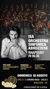 Il concerto dell’Orchestra, diretta dal maestro Federico Mondelci, si terrà alle 21.15 nella Sala 5 del Multiplex Arca, la multisala cinematografica di via Fellini. L’Orchestra si esibirà con “Rhapsody in Blue”, il celebre brano di George Gershwin, composto esattamente un secolo fa e sarà interpretato al pianoforte dal maestro Giuliano Mazzoccante, direttore artistico dello Spoltore Ensemble.