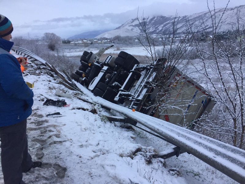 Maltempo in Abruzzo: Tir si ribalta su A25 a causa della neve che sta cadendo abbondante nel tratto tra Magliano e Avezzano.