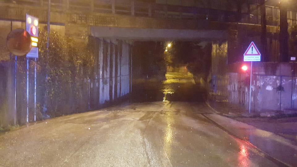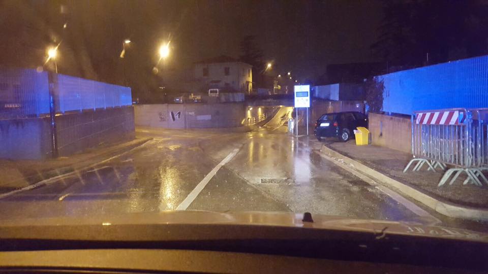 Maltempo: ore 4.30 il Pescara esonda! Golene chiuse dopo la segnalazione degli appositi semafori di Via Paolucci. Allagati anche diversi sottopassi.