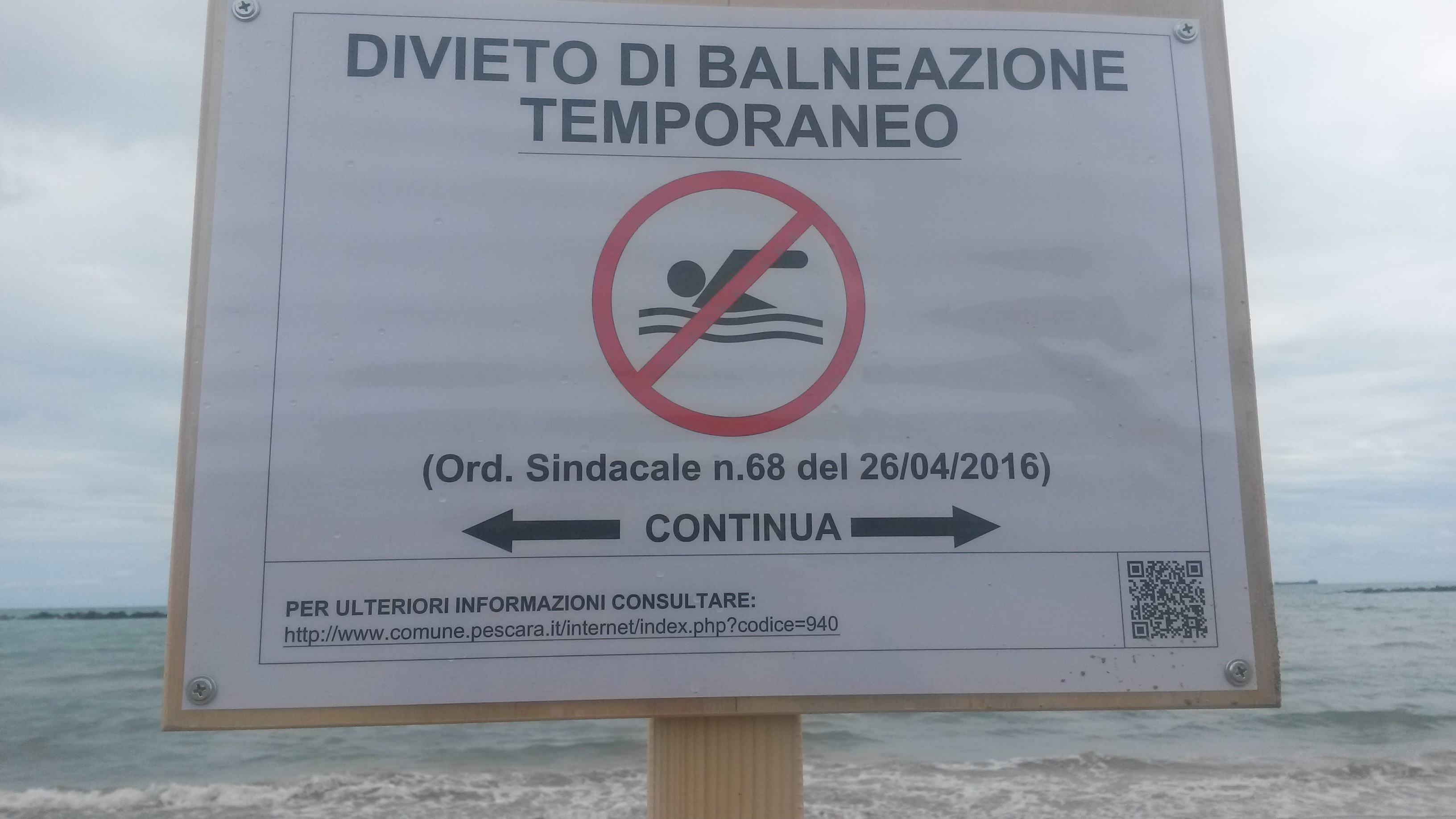 Sono stati posti oggi, lungo la spiaggia di Pescara che va dalla Madonnina a via Ragazzi del ’99, i cartelli che indicano il divieto temporaneo di balneazione.