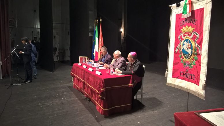 Durante la cerimonia, ospitata dal teatro Marrucino, si è svolto anche un convegno storico-celebrativo su “Chieti Città Aperta – Storia di straordinaria generosità” , moderato dal collega Luca Pompei, che ha visto tra i relatori l’arcivescovo della Diocesi di Chieti Vasto monsignor Bruno Forte, il prorettore dell’Università d’Annunzio Stefano Trinchese, la curatrice della relazione inviata alla Presidenza della Repubblica per l’ottenimento della Medaglia Maria Teresa Giusti e lo storico Marco Patricelli.