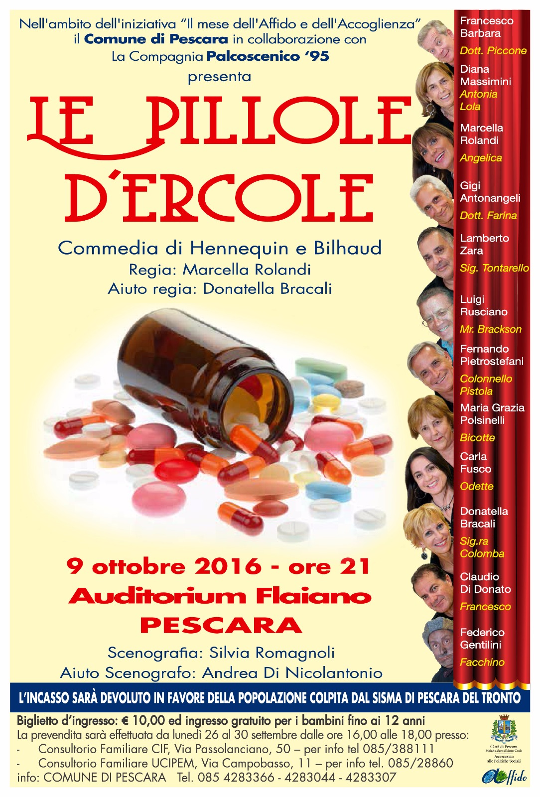 Affido familiare, accoglienza e solidarietà: un connubio che sarà protagonista di diverse iniziative in Abruzzo. Domenica prossima a Pescara è prevista una manifestazione organizzata nell’ambito delle iniziative legate al mese dell’affido e dell’accoglienza Alle ore 21, all’auditorium Flaiano, si terrà la “Commedia Teatrale di Hennequin e Bilhaud”, a cura della Compagnia Teatrale “Palcoscenico 95”. Lo spettacolo, oltre a promuovere le tematiche dell’affido familiare per la campagna intrapresa dall’assessorato alle politiche sociali, sarà l’occasione per raccogliere fondi in favore dei territori e delle popolazioni di Arquata e Pescara del Tronto colpite dal sisma del 24 agosto scorso.