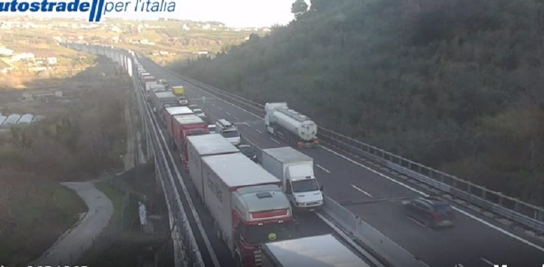 Mezzi di soccorso ancora impegnati sull’A14, nel tratto tra i caselli di Pescara Ovest e Pescara Sud, direzione sud per un veicolo che ha preso fuoco. Chiuso per ragioni di sicurezza il tratto, personale di “Autostrade per l’Italia” e Polizia Stradale stanno dirottando il traffico sulla SS16, mentre si è formata una coda di almeno 4 chilometri. Sulla A14 Bologna Taranto, tra Pescara ovest e Pescara sud, verso Bari, è stata disposta la chiusura del tratto a causa di un’autoarticolato che trasportava carta e che rende difficoltose le operazioni di spegnimento, all’altezza del km 391 e 500. All’interno del tratto chiuso i veicoli fermi in coda vengono fatti defluire sulla corsia di sorpasso. Dopo l’uscita obbligatoria a Pescara ovest è possibile rientrare a Pescara sud dopo aver percorso la viabilità ordinaria. Sul luogo dell’evento sono presenti tutti i mezzi di soccorso ed il Personale di Autostrade per l’Italia. Piuttosto complesse, per i vigili del fuoco, le operazioni di spegnimento del tir, che trasportava collettame. Di conseguenza è stata disposta la chiusura del tratto. Domato il rogo, sono ora in corso le operazioni di bonifica, rimozione, messa in sicurezza e ripristino. Non ci sono feriti. Gli interventi sono coordinati dal Centro operativo autostradale (Coa) di Città Sant’Angelo