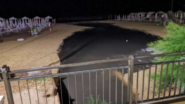 Una forte pioggia notturna e come di consueto a Montesilvano i fossi di scolo e le spiagge antistanti diventano uno specchio maleodorante di acque nere che finiscono in mare con gli scogli a fare da tappo, come già accaduto a giugno.