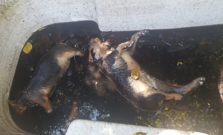 Le carcasse di due cani di piccola taglia sono state trovate in una vasca con acqua putrida in un’area verde adibita a discarica in un strada che costeggia la ferrovia, a Montesilvano. Avevano un filo elettrico stretto intorno al collo e alle zampe.