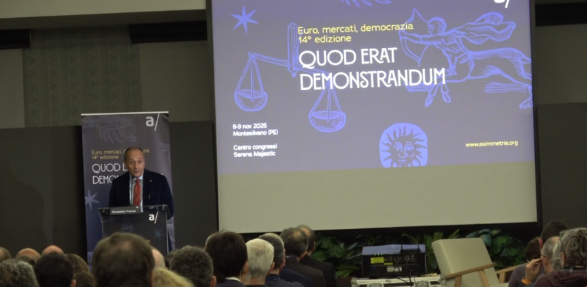 Il presidente Bagnai ha spiegato che «Le simmetrie della costruzione europea sono plurime: ci sono le asimmetrie dimensionali fra i grandi e i piccoli paesi e l’Italia dimensionalmente è il terzo paese dell’Eurozona. Quindi dovrebbe imparare a far sentire la sua voce. Poi ci sono delle asimmetrie più sottili di carattere economico che determinano alcuni modelli di sviluppo di cui adesso cominciamo a vedere i limiti. Il quattordicesimo convegno annuale dell’Associazione a/simmetria si intitola “Quod erat demonstrandum” proprio per evidenziare una serie di fallimenti a cui stiamo assistendo: quello del modello di sviluppo tedesco, tutto sbilanciato sulle esportazioni, o il fallimento del modello di sviluppo francese, tutto sbilanciato sulle importazioni. Erano ampiamente prevedibili e in effetti qualcuno lo aveva previsto. In questo momento non è più possibile nascondere che la costruzione europea non è messa a rischio dall’Italia che anzi è un paese tutto sommato equilibrato, sotto il profilo del modello di sviluppo economico, ma dai due grandi che sono quelli che finora ci hanno fatto la lezione e che ora stanno pagando il conto della loro arroganza».