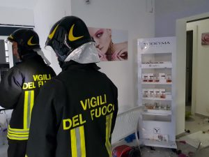 I vigili del fuoco di Pescara sono intervenuti, questa mattina, per domare le fiamme in seguito all’esplosione di una bomba carta davanti alla vetrina di un centro estetico a Montesilvano.