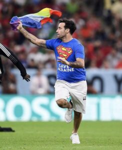 Il disturbatore che indossa la maglietta di Superman riesce sempre a farla franca. Ha all’attivo l’ingresso non consentito in tantissime partite: Inter-Mazembe valida per la finale del Mondiale per Club, Sampdoria-Napoli del 2010, Belgio-USA della Coppa del Mondo 2014 e poi Napoli-Juventus del 2017 quando lanciò una sciarpa verso il “traditore” Higuain, colpevole di essersi trasferito dagli azzurri ai rivali bianconeri. E ora se la sta cavando egregiamente anche con le missioni di solidarietà in Ucraina, in Iran, in Burundi e in india. Oggi parla al microfono del Tg8 e martedì 10 gennaio sarà ospite del programma Rete8 Matinée condotto da Paola De Simone.