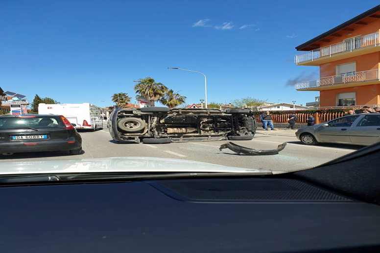 L’incidente stradale è avvenuto, poco dopo le ore 15, di oggi, 5 aprile, all’altezza del Bingo Orione di Montesilvano. Secondo una prima ricostruzione il Suv, di colore grigio, ha urtato un’utilitaria, di colore rosso, nella parte posteriore, e poi si è ribaltato.