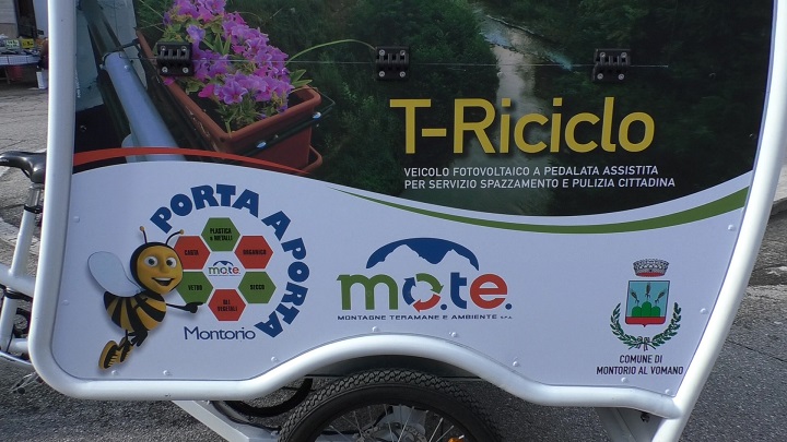 Il MO.TE. Montagne Teramane e Ambiente Spa ha consegnato al Comune di Montorio al Vomano una cargo-bike a pedalata assistita, alimentata con pannelli fotovoltaici, denominata T-Riciclo.