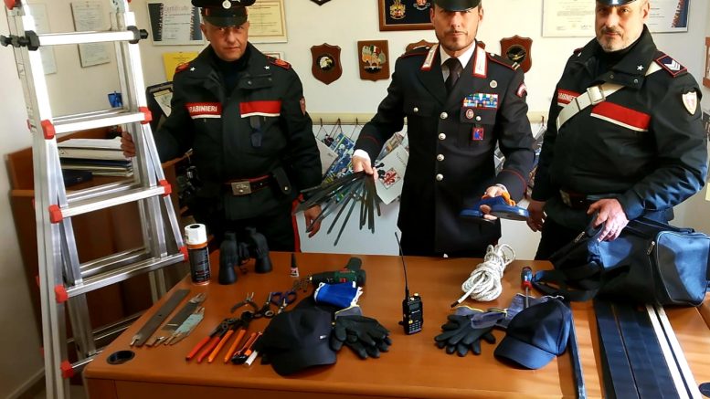 Sono da poco passate le 4.00 di notte, quando i Carabinieri del Nucleo Radiomobile di Giulianova intervengono presso la filiale di Banca Intesa di Pagliare di Morro d’Oro, dove erano stati visti due individui aggirarsi, con fare sospetto, nelle vicinanze. Questi, alla vista dei militari, si sono dati immediatamente alla fuga riuscendo a raggiungere il tetto della banca, mentre, nel frattempo, sopraggiungevano, in rinforzo, i Carabinieri di Notaresco e Silvi Marina che circondavano l’area. Tutto l’edificio è stato ispezionato dai Carabinieri, locale per locale, fino a rinvenire i due malviventi nascosti sul tetto. Vicino a loro, due borsoni contenenti: trapani, grimaldelli, attrezzi da scasso, abiti di ricambio, uno strumento a ventosa per il taglio e l’asportazione dei vetri e, particolare inquietante, delle fascette in plastica. Dopo la cattura si è appurato che i due, entrambi campani, identificati in un 27enne di Villaricca ed un 33enne di Napoli, sono specializzati nel compiere rapine con sequestro di persona ai danni di istituti di credito. Individui molto scaltri ed in possesso di strumenti particolarmente sofisticati, avevano rimosso il vetro blindato di una finestra posta al piano terra della banca. Avevano, inoltre, già ricostruito le cornici metalliche poste attorno al vetro, fissandole con del nastro biadesivo per non destare alcun sospetto dio manomissione degli infissi. Una volta all’interno, servendosi di uno strumento munito di potenti ventose in grado di sostenere il peso di un vetro blindato, avrebbero richiuso il varco creato nella finestra per poi attendere, al mattino, l’arrivo degli impiegati dell’istituto di credito dove era previsto l’arrivo di un portavalori carico di denaro contante. Le fascette di plastica sarebbero dovute servire ad immobilizzare i dipendenti della banca, legando loro polsi e caviglie per impedire di dare l’allarme, assicurandosi così la fuga indisturbata. I Carabinieri hanno mandato all’aria tutti i loro loschi piani. Sono in corso indagini per accertare eventuali complicità in zona dei due malfattori.