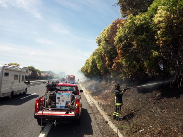 Il tempestivo intervento dei vigili del fuoco ha evitato che l’incendio potesse estendersi ad un capannone agricolo di circa 300 metri quadrati, al quale le fiamme si sono avvicinate. Il rogo ha prodotto una colonna di fumo scuro e denso visibile a notevole distanza e ha raggiunto anche la scarpata che si trova su un lato dell’autostrada.