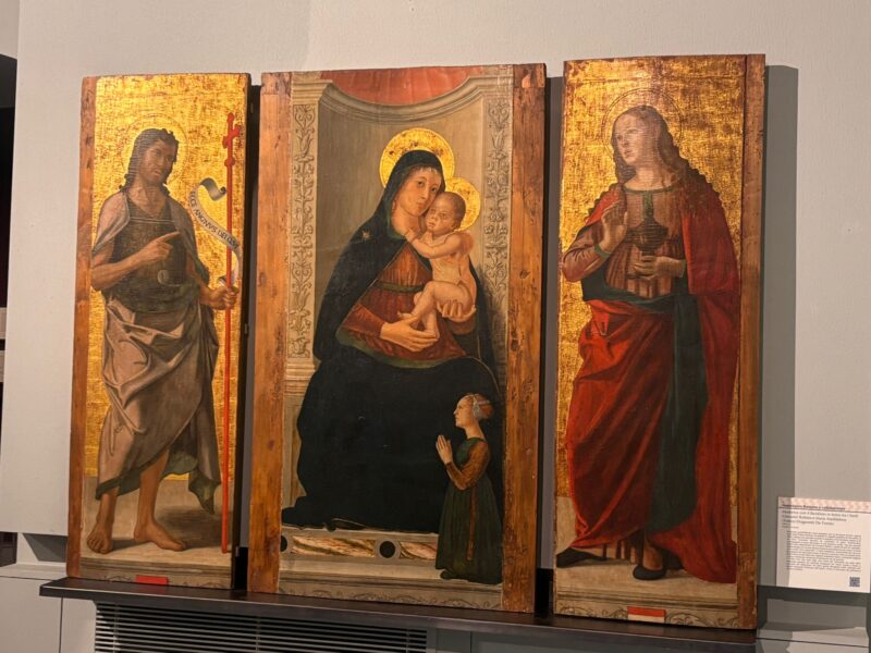 L’opera del 1490, attribuita al pittore noto come Antoniazzo Romano, è stata presentata oggi al Munda. Il trittico di grandi dimensioni raffigura una Madonna che siede su un trono con il bambino in braccio, tra San Giovanni Battista e Maria Maddalena. Viene così restituita un’opera molto legata al territorio Aquilano.L’opera è stata rintracciata nella casa di un collezionista romano. Di recente il Munda ha deciso di acquistarla per riportarla a casa.