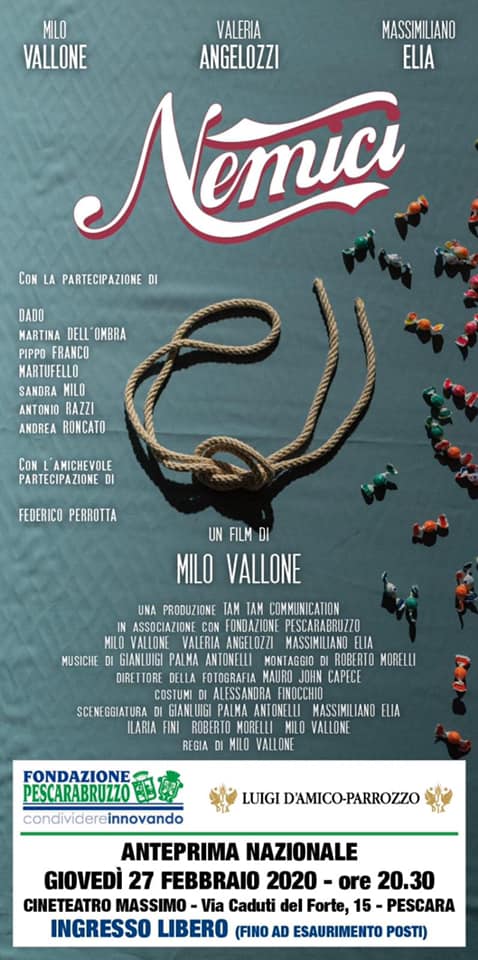 Anteprima nazionale giovedì 27 alle 20.30 al Teatro Massimo di Pescara per il nuovo lungometraggio di Milo Vallone intitolato “Nemici”.