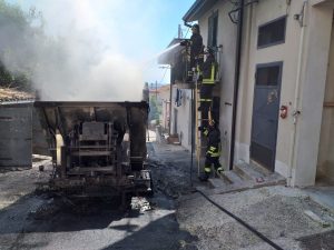 Un mini compattatore utilizzato per la raccolta dei rifiuti è andato a fuoco questa mattina a Nocciano. L’incendio è divampato mentre il mezzo si trovava nei pressi del municipio.