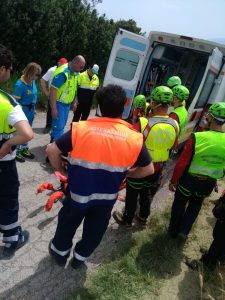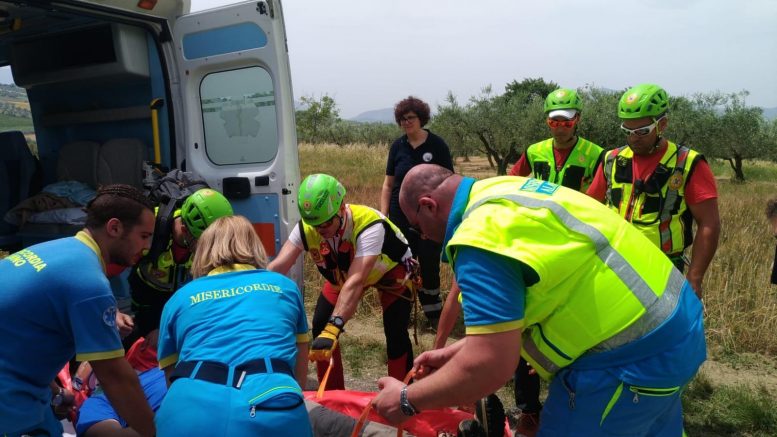 Il disperso, politraumatizzato, è stato stabilizzato sulla barella e , grazie a una portantina con contrappeso, è stato evacuato e caricato a bordo dell’ambulanza messa a disposizione dalla Misericordia.