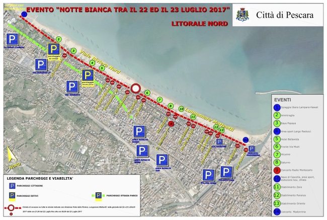 Notte Bianca dell’Adriatico: come muoversi a Pescara. Dettagliato il programma del Comune anche per quel che riguarda la viabilità.