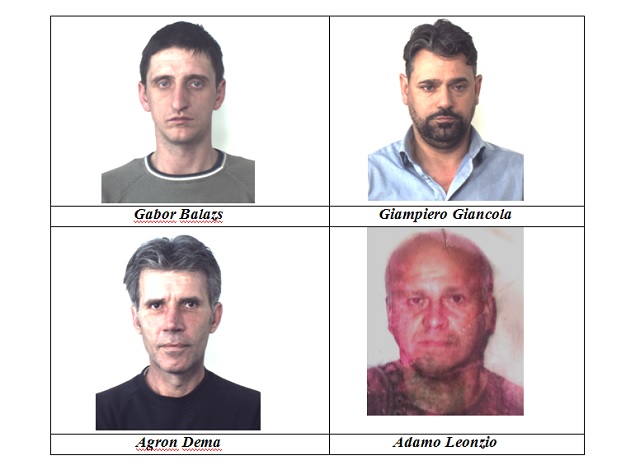 Tre gli arrestati nel corso dell’operazione di questa mattina (nelle foto) : Agron Dema, Giampiero Giancola e Adamo Leonzio. Gabor Balazs, destinatario di misura, risulta al momento irreperibile.