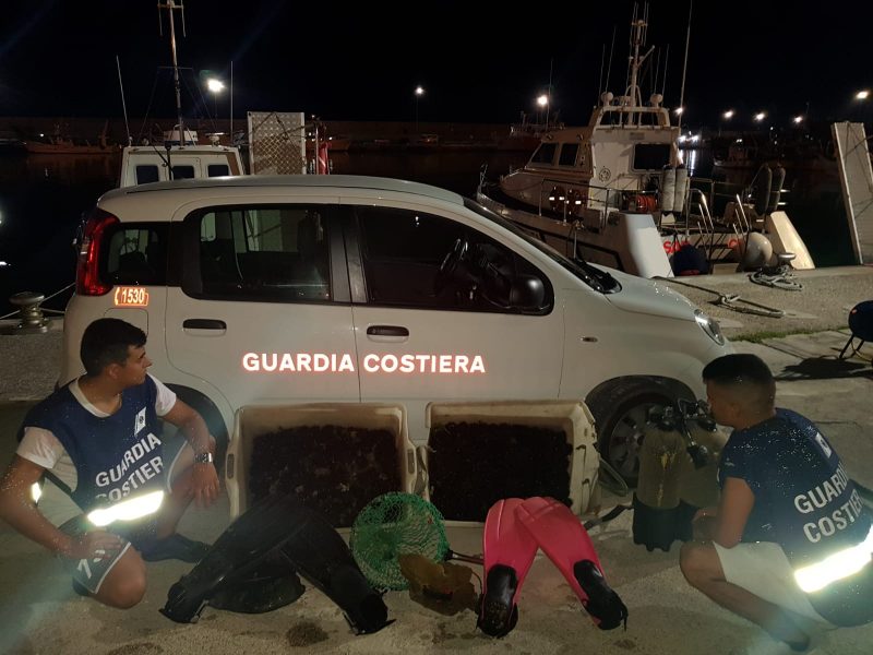 La Guardia Costiera di Ortona ha sequestrato 2.000 ricci ancora vivi; sanzioni per complessivi 5.000 euro nei confronti di due subacquei e di un complice rimasto a terra, tutti provenienti dalla Puglia. Sequestrata l’intera attrezzatura da sub. I ricci sono stati rigettati in mare.