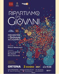 Il 2 giugno, alle ore 19.00, il teatro riapre i battenti al pubblico con il concerto “Ripartiamo dai giovani”. Sarà l’orchestra “I Giovani Accademici” ad eseguire musiche di Gioacchino Rossini, Bela Bartók, Dimitrj Shostakovic.