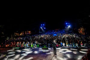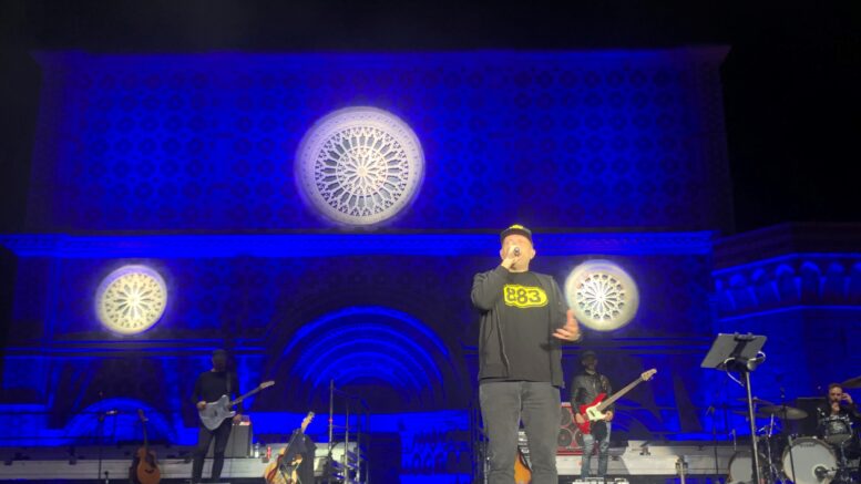 Pubblico in delirio ha ballato e cantato a squarciagola con le luci dei telefonini accesi alle canzoni d’amore. Max Pezzali, un’icona degli anni 90, ieri all’Aquila ha riproposto ai fan i più grandi successi dei primi album degli 883, il suo gruppo prima di intraprendere la carriera da solista. Non me la menare, Sei un mito, La regola dell’amico, La dura legge del Goal, Come mai, Una canzone d’amore fino a Nord Sud Ovest Est e Hanno ucciso l’uomo ragno passando per Con un deca e tanti medley. Il tema, nell’ottica del filo conduttore scelto dal maestro Leonardo De Amicis per questa edizione, è stato proprio il viaggio nei mitici anni 90. In piedi a cantare tutte le persone cresciute a pane e 883 con parole, modi di dire, che hanno cambiato anche il linguaggio della musica pop. Un ritorno dopo 16 anni con una città che è rinata, ha detto, memorabile il suo concerto nel 2005 in piazza Duomo.