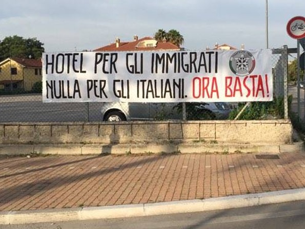 Intanto CasaPound Pescara ha affisso, ieri mattina, uno striscione nei pressi della struttura alberghiera.